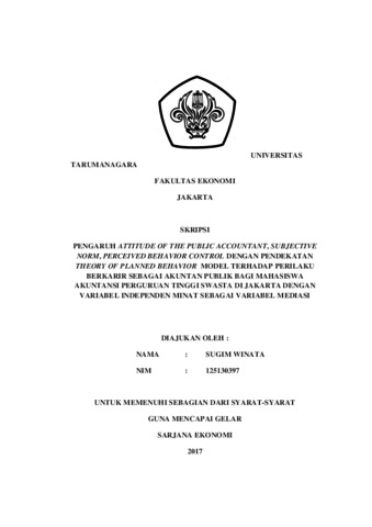 Winata, Sugim (2017) Pengaruh attitude of the public accountant, subjective norm, perceived behavior control dengan pendekatan theory of planned behavior model terhadap pemilihan karir sebagai akuntan publik bagi mahasiswa akuntansi perguruan tinggi swasta di Jakarta dengan variabel independen minat sebagai variabel me / Sugim Winata. Skripsi thesis, Universitas Tarumanagara.