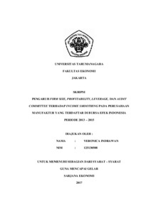 Indrawan, Veronica (2017) Pengaruh firm size, profitability, leverage dan audit committee terhadap income smoothing pada perusahaan manufaktur yang terdaftar di Bursa Efek Indonesia periode 2013-2015 / Veronica Indrawan. Skripsi thesis, Universitas Tarumanagara.