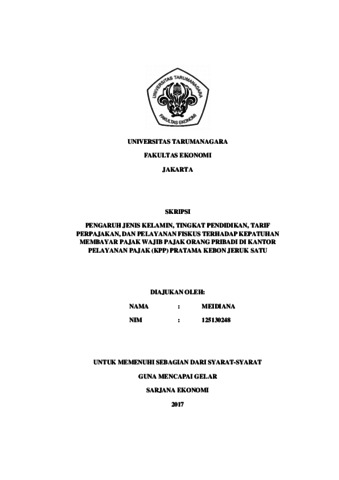 Meidiana, Meidiana (2017) Pengaruh jenis kelamin, tingkat pendidikan, tarif perpajakan, dan pelayanan fiskus terhadap kepatuhan membayar pajak wajib pajak orang pribadi di Kantor Pelayanan Pajak (KPP) Pratama Kebon Jeruk Satu / Meidiana. Skripsi thesis, Universitas Tarumanagara.