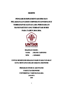 Cahyono, Diane (2018) PENGARUH IMPLEMENTASI IFRS DAN PELAKSANAANGOOD CORPORATE GOVERNANCE TERHADAP KUALITAS LABA PERUSAHAAN MANUFAKTUR YANG TERDAFTAR DI BEI PADA TAHUN 2014-2016. Skripsi thesis, Universitas Tarumanagara.