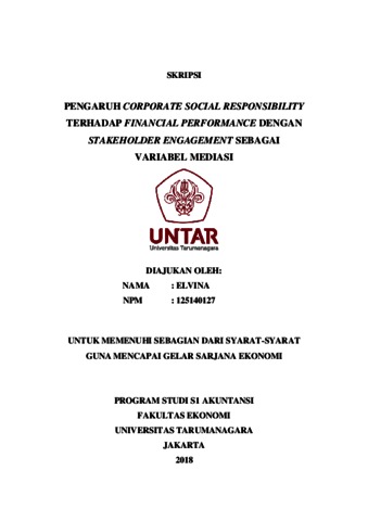 Elvina, Elvina (2018) PENGARUH CORPORATE SOCIAL RESPONSIBILITY TERHADAP FINANCIAL PERFORMANCE DENGAN STAKEHOLDER ENGAGEMENT SEBAGAI VARIABEL MEDIASI. Skripsi thesis, Universitas Tarumanagara.