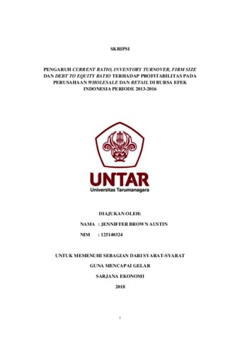 Austin, Jenniffer Brown (2018) PENGARUH CURRENT RATIO, INVENTORY TURNOVER, FIRM SIZE DAN DEBT TO EQUITY RATIO TERHADAP PROFITABILITAS PADA PERUSAHAAN WHOLESALE DAN RETAIL DI BURSA EFEK INDONESIA PERIODE 2013-2016. Skripsi thesis, Universitas Tarumanagara.