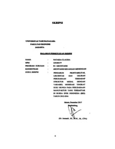 Kata kunci: Profitabilitas, Likuiditas, Ukuran Perusahaan, Struktur Modal, dan Tingkat SukuBunga.