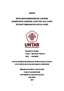 Wijaya, Michael (2017) PENGARUH INDEPENDENSI AUDITOR, KOMPETENSI AUDITOR, AUDIT FEE, DAN AUDIT TENURE TERHADAP KUALITAS AUDIT. Skripsi thesis, Universitas Tarumanagara.