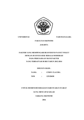 Claudia, Cindy (2016) FAKTOR YANG MEMPENGARUHI DIVIDEND PAYOUT POLICY DENGAN BUSINESS RISK SEBAGAI MODERASI PADA PERUSAHAAN MANUFAKTUR YANG TERDAFTAR DI BEI TAHUN 2012-2014. Skripsi thesis, Universitas Tarumanagara.