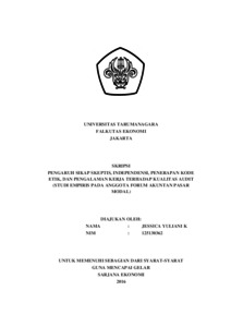 Korompis, Jessica Yuliani (2017) Pengaruh sikap skeptis, independensi, penerapan kode etik, dan pengalaman kerja terhadap kualitas audit (Studi empiris pada anggota forum akuntan pasar modal) / Jessica Yuliani Korompis. Skripsi thesis, Universitas Tarumanagara.