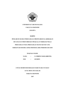 Margarretha, Cathrine (2017) Pengaruh ukuran perusahaan, profitabilitas, kebijakan hutang dan pertumbuhan penjualan terhadap nilai perusahaan pada perusahaan manufaktur yang terdaftar di Bursa Efek Indonesia (BEI) periode 2013-2015 / Cathrine Margarretha. Skripsi thesis, Universitas Tarumanagara.