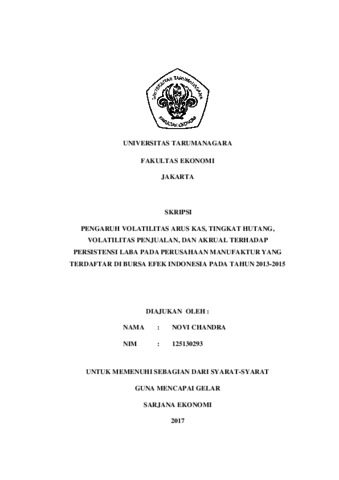 Chandra, Novi (2017) Pengaruh volatilitas arus kas, tingkat hutang, volatilitas penjualan, dan akrual terhadap persistensi laba pada perusahaan manufaktur yang terdaftar di Bursa Efek Indonesia pada tahun 2013-2015 / Novi Chandra. Skripsi thesis, Universitas Tarumanagara.