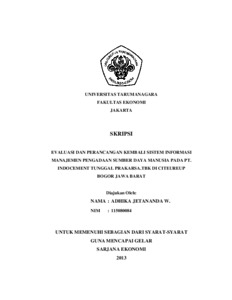 W, Adhika Jetananda (2013) EVALUASI DAN PERANCANGAN KEMBALI SISTEM INFORMASI MANAJEMEN PENGADAAN SUMBER DAYA MANUSIA PADA PT. INDOCEMENT TUNGGAL PRAKARSA.TBK DI CITEUREUP BOGOR JAWA BARAT BOGOR JAWA BARAT. Skripsi thesis, Universitas Tarumanagara.