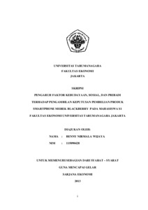 Wijaya, Benny Nirmala (2013) PENGARUH FAKTOR KEBUDAYAAN, SOSIAL, DAN PRIBADI TERHADAP PENGAMBILAN KEPUTUSAN PEMBELIAN PRODUK SMARTPHONE MEREK BLACKBERRY PADA MAHASISWA S1 FAKULTAS EKONOMI UNIVERSITAS TARUMANAGARA JAKARTA. Skripsi thesis, Universitas Tarumanagara.