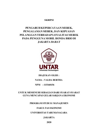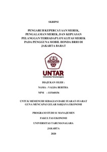 BERTHA, VALDA (2020) PENGARUH KEPERCAYAAN MEREK, PENGALAMAN MEREK, DAN KEPUASAN PELANGGAN TERHADAP LOYALITAS MEREK PADA PENGGUNA MOBIL HONDA BRIO DI JAKARTA BARAT. Skripsi thesis, Universitas Tarumanagara.