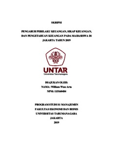 Arta, William Wun (2020) PENGARUH PERILAKU KEUANGAN, SIKAP KEUANGAN, DAN PENGETAHUAN KEUANGAN PADA MAHASISWA Di JAKARTA TAHUN 2019. Skripsi thesis, Universitas Tarumanagara.