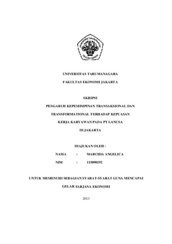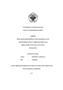 Angelica, Marchia (2014) PENGARUH KEPEMIMPINAN TRANSAKSIONAL DAN TRANFORMATIONAL TERHADAP KEPUASAN KERJA KARYAWAN PT LANUSA DI JAKARTA. Skripsi thesis, Universitas Tarumanagara.