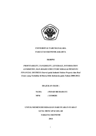 Rahayu, Indah Sri (2014) PROFITABILITY, TANGIBILITY, LEVERAGE, INFORMATION ASYMMETRY, DAN BOARD STRUCTURE SEBAGAI PENENTU FINANCIAL DISTRESS (Survei pada Industri Sektor Property dan Real Estate yang Terdaftar di Bursa Efek Indonesia pada Tahun 2008-2012). Diploma thesis, Universitas Tarumanagara.