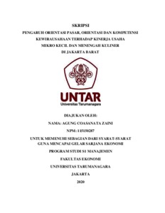 ZAINI, AGUNG COASANATA (2020) PENGARUH ORIENTASI PASAR, ORIENTASI DAN KOMPETENSI KEWIRAUSAHAAN TERHADAP KINERJA USAHA MIKRO KECIL DAN MENENGAH KULINER DI JAKARTA BARAT. Skripsi thesis, Universitas Tarumanagara.