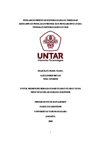 BRYAN, ALEXANDER (2020) PENGARUH ORIENTASI KEWIRAUSAHAAN TERHADAP KEMAMPUAN PENILAIAN PROYEK DAN PENGARUHNYA PADA TINDAKAN KEWIRAUSAHAAN UKM. Skripsi thesis, Universitas Tarumanagara.