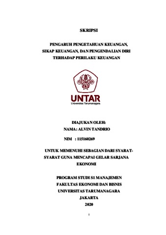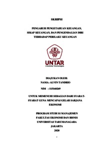 TANDRIO, ALVIN (2020) PENGARUH PENGETAHUAN KEUANGAN, SIKAP KEUANGAN, DAN PENGENDALIAN DIRI TERHADAP PERILAKU KEUANGAN. Skripsi thesis, Universitas Tarumanagara.