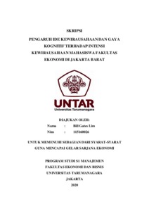 Lim, Bill Gates (2020) PENGARUH IDE KEWIRAUSAHAAN DAN GAYA KOGNITIF TERHADAP INTENSI KEWIRAUSAHAAN MAHASISWA FAKULTAS EKONOMI DI JAKARTA BARAT. Skripsi thesis, Universitas Tarumanagara.