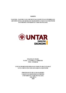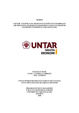 CHRISTIE, CANDELLA (2020) FAKTOR - FAKTOR YANG MENENTUKAN KEPUTUSAN PEMBELIAN AIR MINUM DALAM KEMASAN MAHASISWA FAKULTAS EKONOMI DAN BISNIS UNIVERSITAS TARUMANAGARA. Skripsi thesis, Universitas Tarumanagara.