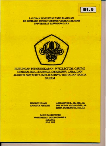 Rasyid, Ardiansyah and Ardana, I Cenik and Santioso, Linda (2012) HUBUNGAN PENGUNGKAPAN INTELLECTUAL CAPITAL DENGAN SIZE, LEVERAGE, OWNERSHIP. LABA, DAN AUDITOR SIZE SERTA IMPLIKASINYA TERHADAP HARGA SAHAM. Karya Ilmiah Dosen.
