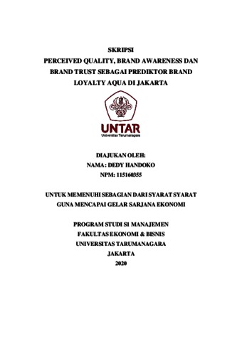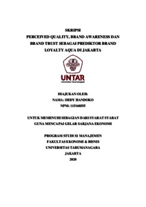 HANDOKO, DEDY (2020) PERCEIVED QUALITY, BRAND AWARENESS DAN BRAND TRUST SEBAGAI PREDIKTOR BRAND LOYALTY AQUA DI JAKARTA. Skripsi thesis, Universitas Tarumanagara.