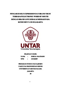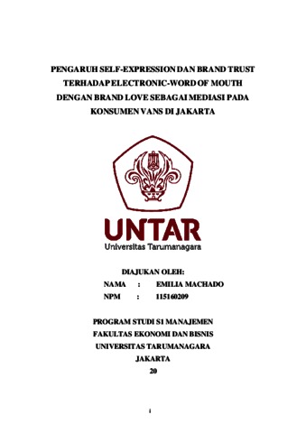 MACHADO, EMILIA (2020) PENGARUH SELF-EXPRESSION DAN BRAND TRUST TERHADAP ELECTRONIC-WORD OF MOUTH DENGAN BRAND LOVE SEBAGAI MEDIASI PADA KONSUMEN VANS DI JAKARTA. Skripsi thesis, Universitas Tarumanagara.