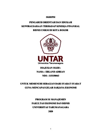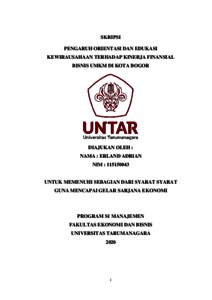 ADRIAN, ERLAND (2020) PENGARUH ORIENTASI DAN EDUKASI KEWIRAUSAHAAN TERHADAP KINERJA FINANSIAL BISNIS UMKM DI KOTA BOGOR. Skripsi thesis, Universitas Tarumanagara.