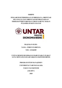FLORENZA, FEREN (2020) PENGARUH KETERSEDIAAN SUMBER DAYA, ORIENTASI PELANGGAN, DAN ORIENTASI KEWIRAUSAHAAN TERHADAP PERTUMBUHAN UMKM WARUNG MAKAN PUJASERA DI KOTA BATAM. Skripsi thesis, Universitas Tarumanagara.