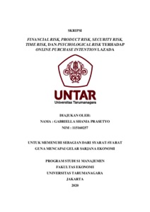 PRASETYO, GABRIELLA SHANIA (2020) FINANCIAL RISK, PRODUCT RISK, SECURITY RISK, TIME RISK, DAN PSYCHOLOGICAL RISK TERHADAP ONLINE PURCHASE INTENTION LAZADA. Skripsi thesis, Universitas Tarumanagara.