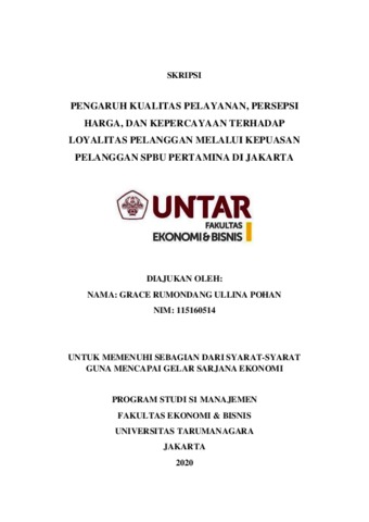 POHAN, GRACE RUMONDANG ULLINA (2020) PENGARUH KUALITAS PELAYANAN, PERSEPSI HARGA, DAN KEPERCAYAAN TERHADAP LOYALITAS PELANGGAN MELALUI KEPUASAN PELANGGAN SPBU PERTAMINA DI JAKARTA. Skripsi thesis, Universitas Tarumanagara.