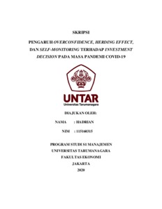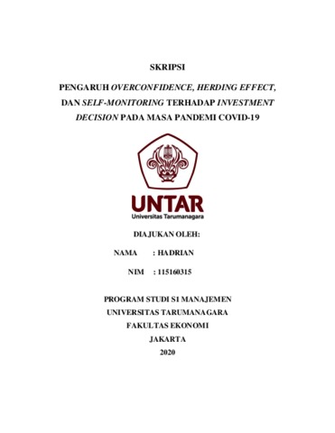 HADRIAN, HADRIAN (2020) PENGARUH OVERCONFIDENCE, HERDING EFFECT, DAN SELF- ONITORING TERHADAP INVESTMENT DECISION PADA MASA PANDEMI COVID-19. Skripsi thesis, Universitas Tarumanagara.