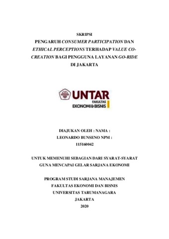 BUNSENO, LEONARDO (2020) PENGARUH CONSUMER PARTICIPATION DAN ETHICAL PERCEPTIONS TERHADAP VALUE CO-CREATION BAGI PENGGUNA LAYANAN GO-RIDE DI JAKARTA. Skripsi thesis, Universitas Tarumanagara.