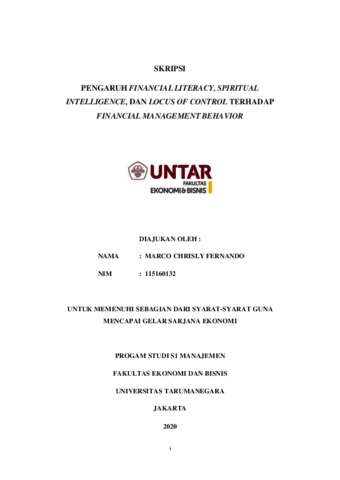 FERNANDO, MARCO CHRISLY (2020) PENGARUH FINANCIAL LITERACY, SPIRITUAL INTELLIGENCE, DAN LOCUS OF CONTROL TERHADAP FINANCIAL MANAGEMENT BEHAVIOR. Skripsi thesis, Universitas Tarumanagara.