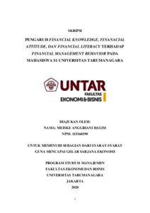 HALIM, MEISKE ANGGRIANI (2020) PENGARUH FINANCIAL KNOWLEDGE, FINANACIAL ATTITUDE, DAN FINANCIAL LITERACY TERHADAP FINANCIAL MANAGEMENT BEHAVIOR PADA MAHASISWA S1 UNIVERSITAS TARUMANAGARA. Skripsi thesis, Universitas Tarumanagara.