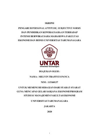 PANCA, MELVIN TRAFIYUS (2020) PENGARUH PERSONAL ATTITUDE, SUBJECTIVE NORMS DAN PENDIDIKAN KEWIRAUSAHAAN TERHADAP INTENSI BERWIRAUSAHA MAHASISWA FAKULTAS EKONOMI DAN BISNIS UNIVERSITAS TARUMANAGARA. Skripsi thesis, Universitas Tarumanagara.