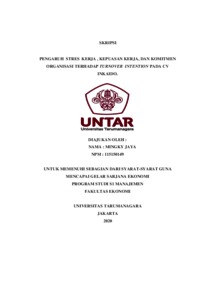 JAYA, MINGKY (2020) PENGARUH STRES KERJA , KEPUASAN KERJA, DAN KOMITMEN ORGANISASI TERHADAP TURNOVER INTENTION PADA CV INKAIDO. Skripsi thesis, Universitas Tarumanagara.