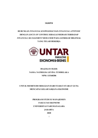 TUMBELAKA, NATHILDA LEVINA (2020) HUBUNGAN FINANCIAL KNOWLEDGE DAN FINANCIAL ATTITUDE DENGAN LOCUS OF CONTROL SEBAGAI MEDIASI TERHADAP FINANCIAL MANAGEMENT BEHAVIOR PADA GENERASI MILENIAL YANG TELAH BEKERJA. Skripsi thesis, Universitas Tarumanagara.