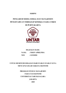 APRILINDA, NIKEN (2020) PENGARUH MEDIA SOSIAL DAN MANAJEMEN PENGETAHUAN TERHADAP KINERJA USAHA UMKM DI PURWAKARTA. Skripsi thesis, Universitas Tarumanagara.