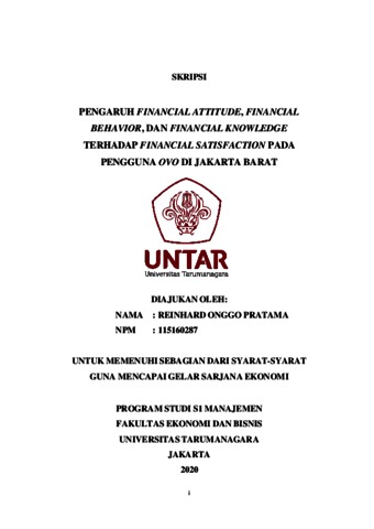 PRATAMA, REINHARD ONGGO (2020) PENGARUH FINANCIAL ATTITUDE, FINANCIAL BEHAVIOR, DAN FINANCIAL KNOWLEDGE TERHADAP FINANCIAL SATISFACTION PADA PENGGUNA OVO DI JAKARTA BARAT. Skripsi thesis, Universitas Tarumanagara.