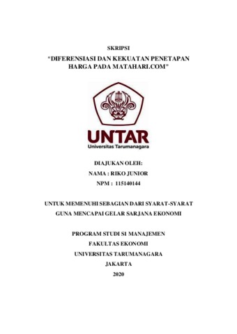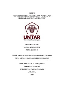 JUNIOR, RIKO (2020) DIFERENSIASI DAN KEKUATAN PENETAPAN HARGA PADA MATAHARI.COM. Skripsi thesis, Universitas Tarumanagara.