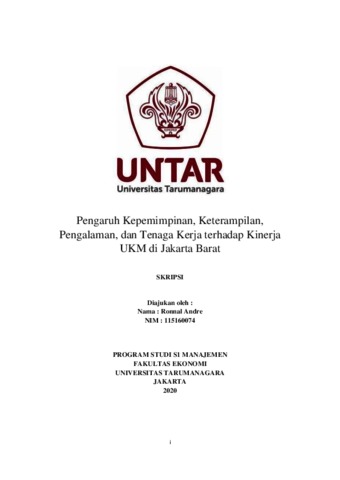 Andre, Ronnal (2020) Pengaruh Kepemimpinan, Keterampilan, Pengalaman, dan Tenaga Kerja terhadap Kinerja UKM di Jakarta Barat. Skripsi thesis, Universitas Tarumanagara.