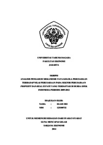 Oei, Ellis (2014) ANALISIS PENGARUH MEKANISME TATA KELOLA PERUSAHAAN TERHADAP NILAI PERUSAHAAN PADA SEKTOR PERUSAHAAN PROPERTY DAN REAL ESTATE YANG TERDAFTAR DI BURSA EFEK INDONESIA PERIODE 2009-2012. Skripsi thesis, UNIVERSITAS TARUMANAGARA.