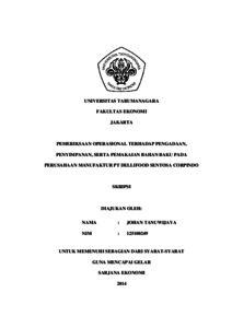 Tanuwijaya, Johan (2014) PEMERIKSAAN OPERASIONAL TERHADAP PENGADAAN, PENYIMPANAN, SERTA PEMAKAIAN BAHAN BAKU PADA PERUSAHAAN MANUFAKTUR PT DELLIFOOD SENTOSA CORPINDO. Skripsi thesis, UNIVERSITAS TARUMANAGARA.