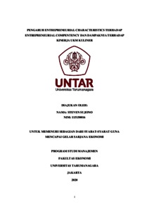 SUJONO, STEVEN (2020) PENGARUH ENTREPRENEURIAL CHARACTERISTICS TERHADAP ENTREPRENEURIAL COMPENTENCY DAN DAMPAKNYA TERHADAP KINERJA UKM KULINER. Skripsi thesis, Universitas Tarumanagara.