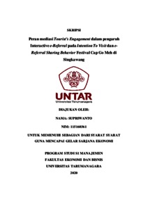 SUPRIWANTO, SUPRIWANTO (2020) Peran mediasi Tourist's Engagement dalam pengaruh Interactive e-Referral pada Intention To Visit dan e- referral Sharing Behavior Festival Cap Go Meh di Singkawang. Skripsi thesis, Universitas Tarumanagara.