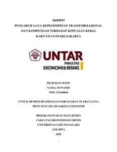SUWANDI, SUWANDI (2020) PENGARUH GAYA KEPEMIMPINAN TRANSFORMASIONAL DAN KOMPENSASI TERHADAP KEPUASAN KERJA KARYAWAN DI DKI JAKARTA. Skripsi thesis, Universitas Tarumanagara.