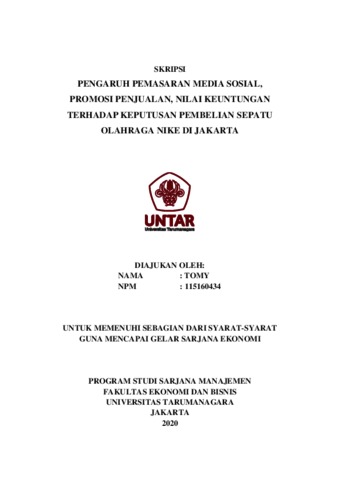 TOMY, TOMY (2020) PENGARUH PEMASARAN MEDIA SOSIAL, PROMOSI PENJUALAN, NILAI KEUNTUNGAN TERHADAP KEPUTUSAN PEMBELIAN SEPATU OLAHRAGA NIKE DI JAKARTA. Skripsi thesis, Universitas Tarumanagara.