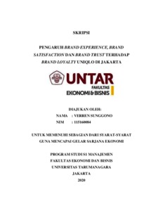 SUNGGONO, VERREN (2020) PENGARUH BRAND EXPERIENCE, BRAND SATISFACTION DAN BRAND TRUST TERHADAP BRAND LOYALTY UNIQLO DI JAKARTA. Skripsi thesis, Universitas Tarumanagara.