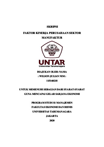 JULIAN, WILSON (2020) FAKTOR KINERJA PERUSAHAAN SEKTOR MANUFAKTUR. Skripsi thesis, Universitas Tarumanagara.