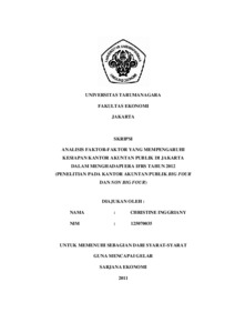 inggriany, Christine (2011) ANALISIS FAKTOR-FAKTOR YANG MEMPENGARUHI KESIAPAN KANTOR AKUNTAN PUBLIK DI JAKARTA DALAM MENGHADAPI ERA IFRS TAHUN 2012 (PENELITIAN PADA KANTOR AKUNTAN PUBLIK BIG FOUR DAN NON BIG FOUR). Skripsi thesis, UNIVERSITAS TARUMANAGARA.